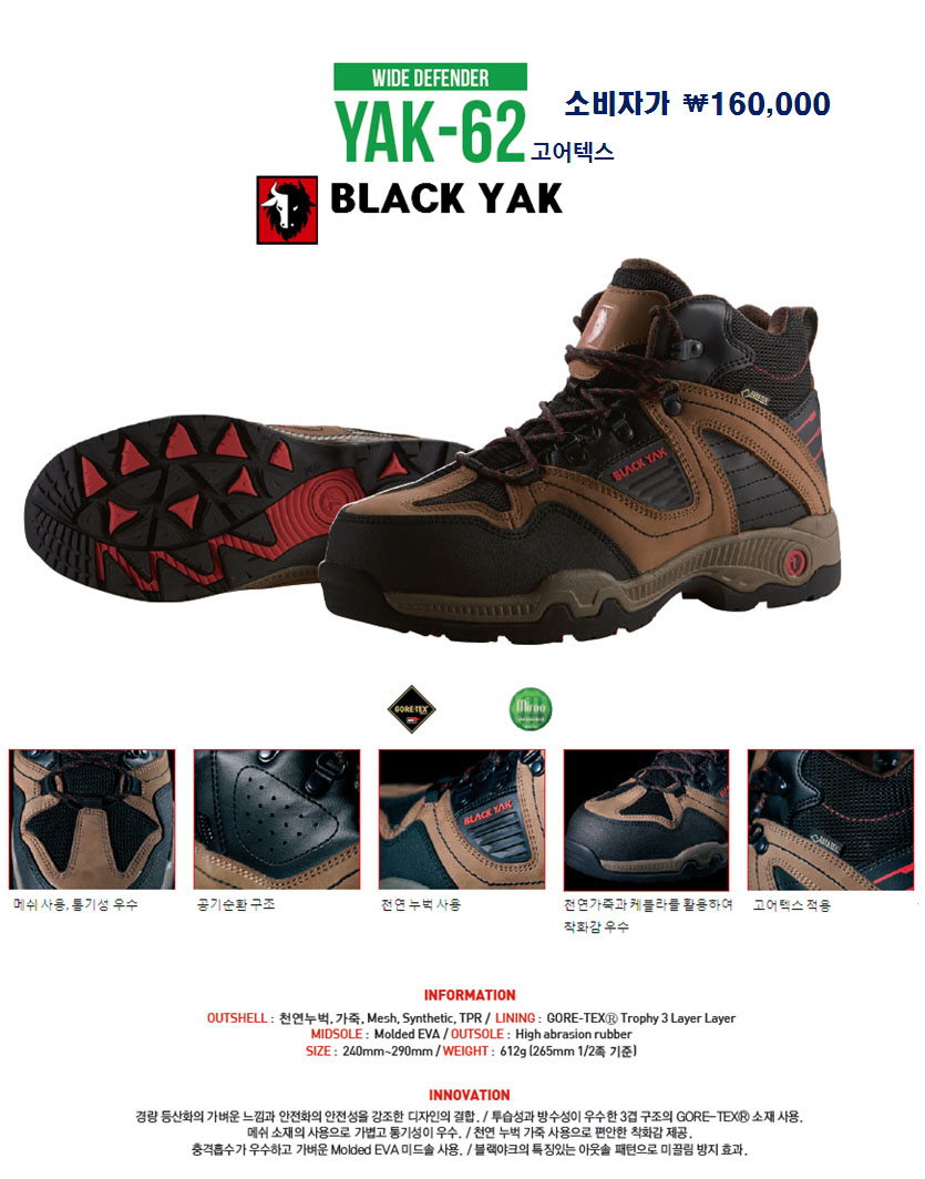 - 제품소재천연가죽과 케블라 혼용,고어텍스 3겹 구조