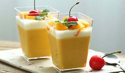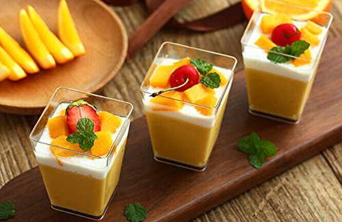 -. Title : Tosnail 5 Oz Tall Square Clear Plastic Dessert Tumbler Cups - 40 Pack