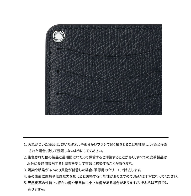 | 注意事項 | ※天然革の特性上、内/外部表面に微細なスクラッチ、色ムラ、染めムラ、ロットぶれなどが見られる 場合がございます。天然革の固有な特性ですので、予めご了承の上お買い求めください。 |