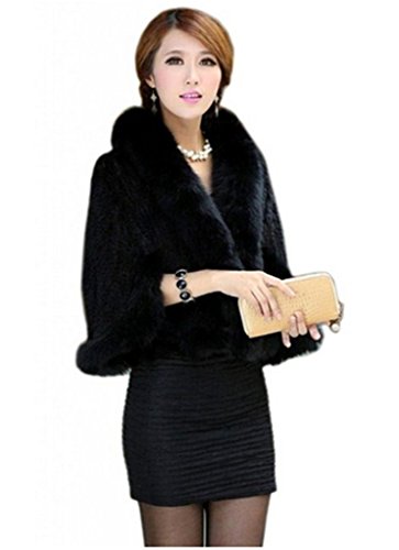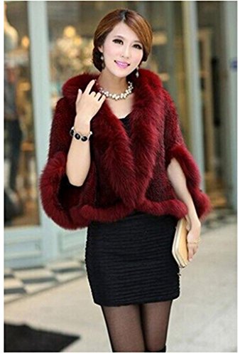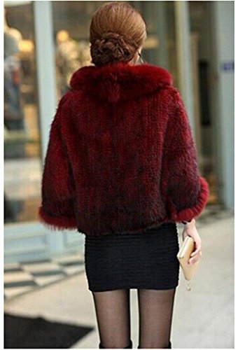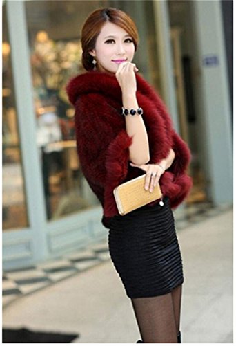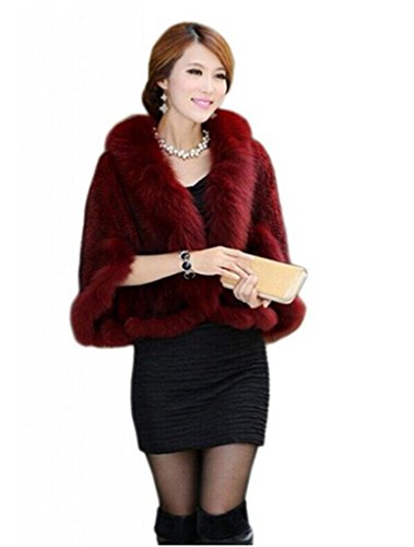 YR Lover Women's Real Mink Fur Warm Stole Cap With Big Fur Collor