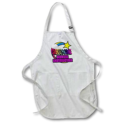 3dRose Shooting Star Rainbow Awesome Fitness Instructor - Full Length Apron, 22 by 30-Inch, black, with Pockets (apr_201289_4)