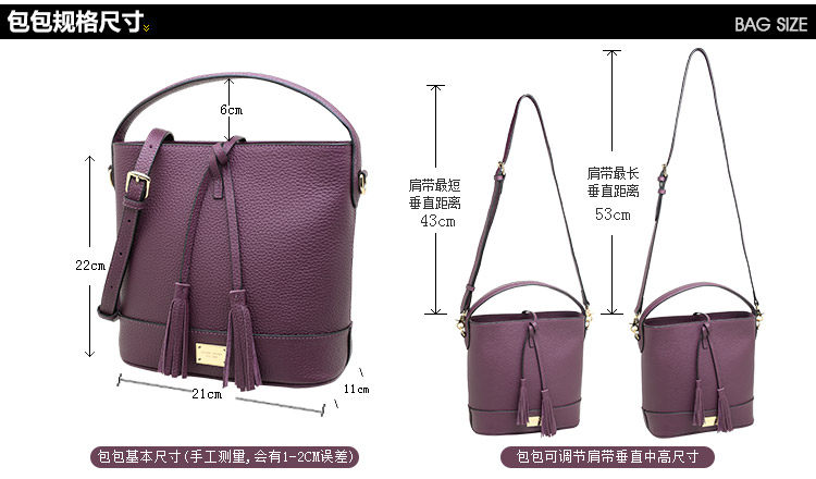 可拆卸肩带最短垂直中高为43cm,最长垂直中高为53cm。