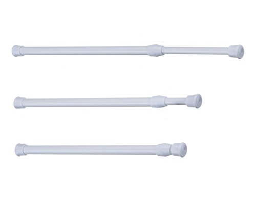 Yephets Adjustable Cupboard Bars Tensions Rod Spring Curtain Rod-3 Pack (16-28 Inch, White)