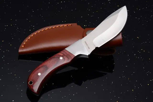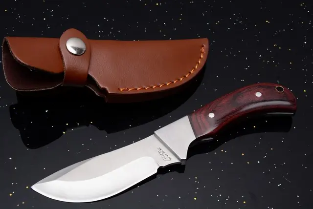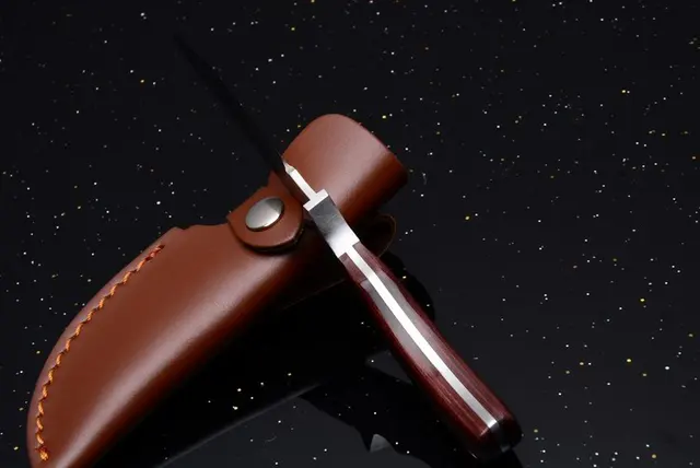 | [해외] 새로운 흑단 수제 사냥 칼 미니 야외 캠핑 서바이벌 전술 나이프 고정 스트레이트 포켓 도구 가죽 칼집 |