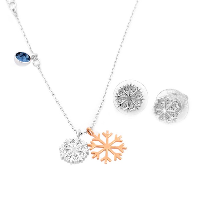 スワロフスキージュエリーのイメージモデル「ミランダ・カー」がデザインを手がけた「ミランダ・カー コレクション」のペンダント&ピアスセット。雪の結晶のモチーフにきらめくクリスタルが繊細かつ優美。女性らしい華やかさが装いを引き立たせてくれます。