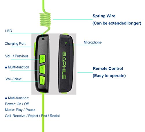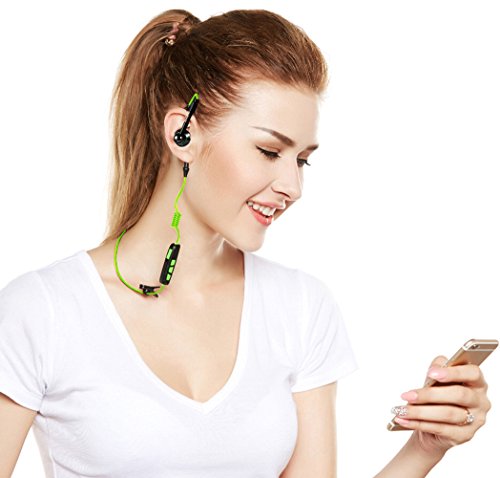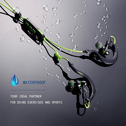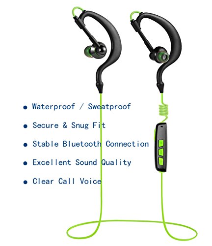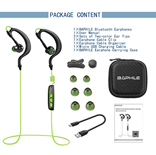 Bluetooth Headset Stereo, BAPHILE B1 Wireless Earbuds with Microphone, Waterproof Earphones with Sport Ear Hooks, V4.1 CVC Noise Cancelling (Green)