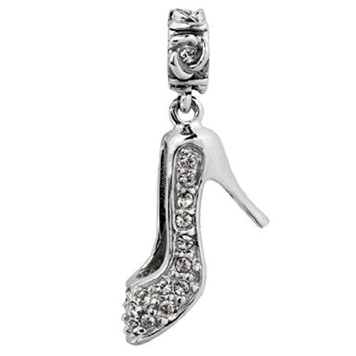 -. Title : Mother's Day Gift, Sterling Silver with Swarovski Crystal Studded High Heel Shoe Dangle Bead Charm