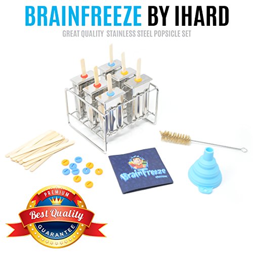 Create Unforgettable Frozen Treats with Your Own Homemade, Stainless-Steel Popsicle Molds! Do you love enjoying a frozen ice pop on a hot summer's day? Like treating your kids to sugar-free frozen yogurt after they've cleaned up their rooms or helped you around the house? Then get your very own iHard Brain-Freeze Stainless-Steel Popsicle Molds, a fun and easy-to-use design that lets you fill up six molds with your favorite flavored water, fruit, yogurt, sorbet or other sweet treats and freeze them for delicious snacking! Complete Popsicle Mold Pack We want you to make enjoying your favorite sweet treats easier than ever, which is why this bundle includes everything you need to get started and enjoy them all summer long! Reusable, Food-Grade Safe Steel These metal popsicle molds are crafted with high-quality stainless steel that's BPA-free and safer than plastic and more durable than silicone. Rust and corrosion resistant, our dishwasher safe molds can be used over and over again. Order Includes: - 6 Popsicle Molds