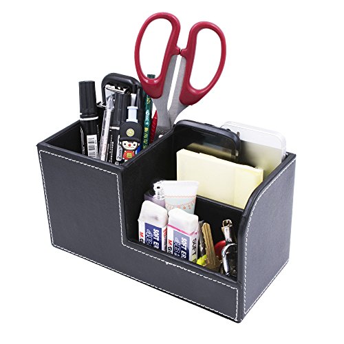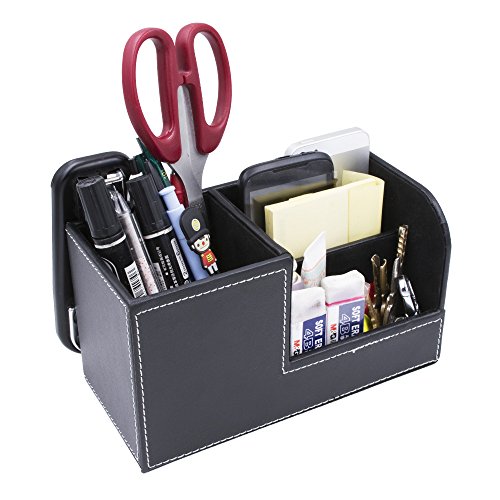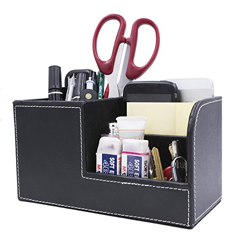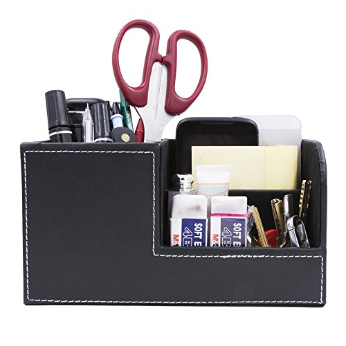 Behomy PU Leather Muti-Function Desk Organizer, Desk Stationery Organizer, Office Storage Compartments Box for Pen, Pencil, Name Cards, Phone, Key, Pocket Money (Small)