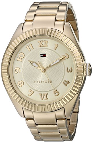 -. Binding : Watch -. Brand : Tommy Hilfiger -. Color : Gold -. Department : womens -. EAN : 0885997093927 -. Feature : Quartz movement / Case diameter: 41 mm / Gold plated case and bracelet with gold dial / Durable mineral crystal protects watch from scratches / Water resistant to 99 feet (30 M): withstands rain and splashes of water, but not showering or submersion -. Label : Tommy Hilfiger -. Manufacturer : Tommy Hilfiger -. Model : 1781345 -. MPN : 1781345 -. PackageQuantity : 1 -. PartNumber : 1781345 -. ProductGroup : Watch -. ProductTypeName : WATCH -. Publisher : Tommy Hilfiger -. ReleaseDate : 2013-09-04 -. Size : One Size -. Studio : Tommy Hilfiger -. Title : Tommy Hilfiger Women's 1781345 Casual Sport Gold-Plated Coin Edge Bezel Watch -. UPC : 885997093927