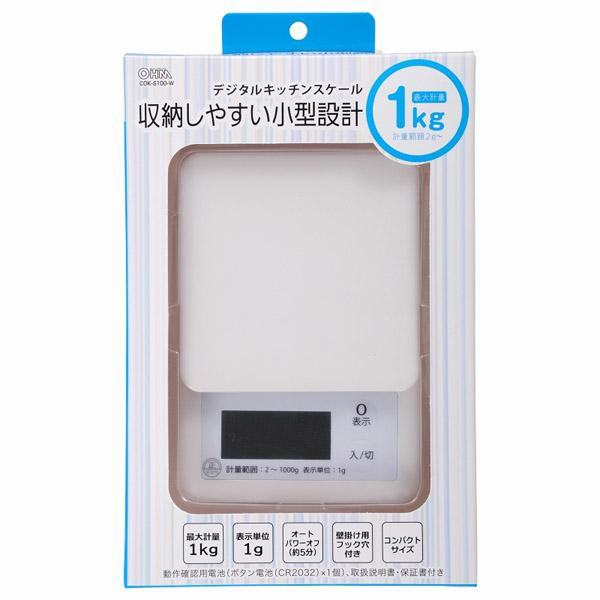 | 最大計量1kg。収納しやすい小型設計のキッチンスケール☆フック穴付きで、壁掛け収納ができます。オートパワーオフ(電源切り忘れ防止)機能付きの省エネ設計。更に、容器の重さを引いて材料別の追加計量が簡単にできる「0表示」機能付き♪ |