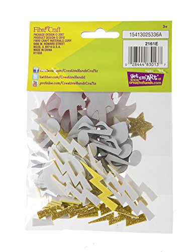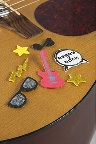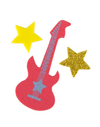 - SPECIFICATIONS: Package includes 70 various colored foam music stickers with glitter guitars, stars, drums, sunglasses, musical notes, and lightning bolts. Please note: Product contains small parts. Not for children under 3 years old.