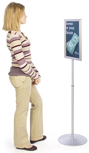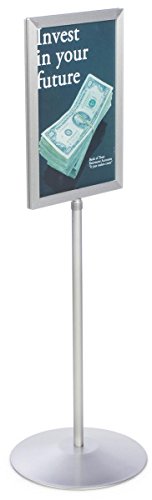 Displays2go Pedestal Sign Holder Stand with Telescoping Post, Double-Sided Poster Frame for 11 x 17 Graphics, Top-Loading Design - Silver/Aluminum (TLS1117SV)