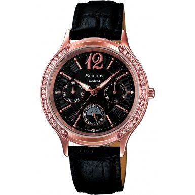 -. Title : Casio SHE-3030GL-5AUER Ladies Sheen Black Leather Strap Watch