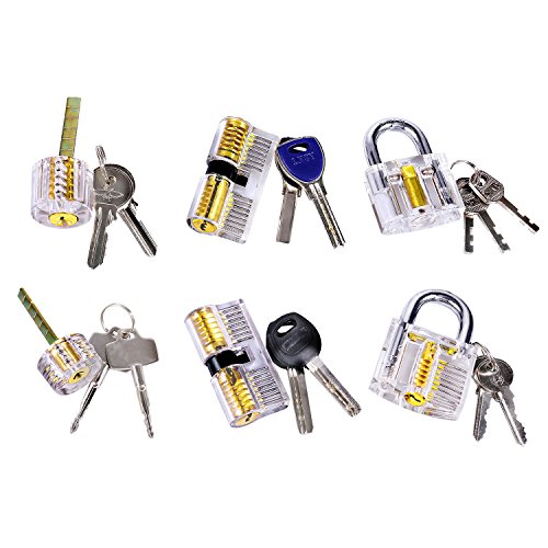 -. Title : 6 Pcs Practice Lock Set, Uolor Transparent Visible Cutaway Crystal Pin Tumbler Keyed Padlock, Lock Pick Training for Locksmith Beginner - Professional Locksmith Tools