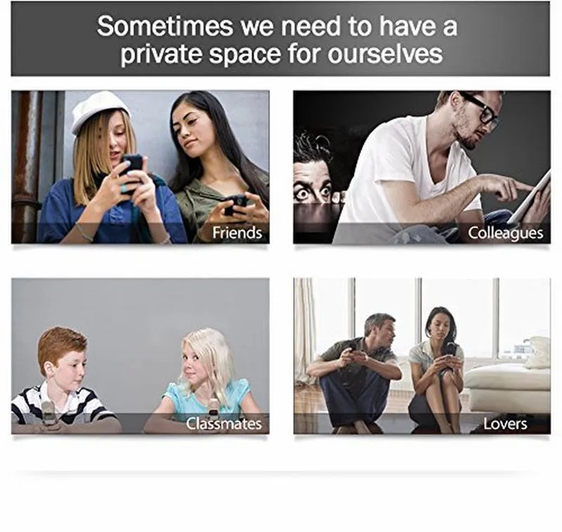 - Blocks out angular visibility by reducing viewing angles; the farther the position of the viewer from the center of the phone, the harder it gets (180° Anti-Spy)