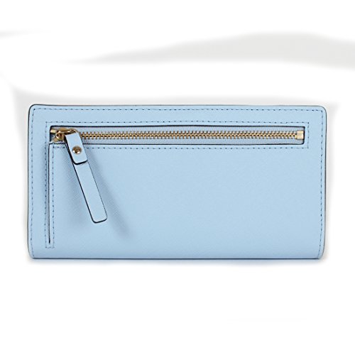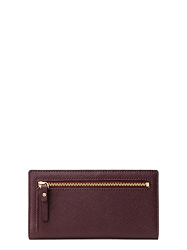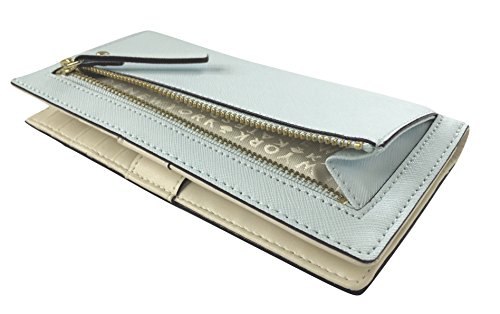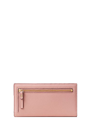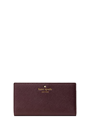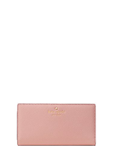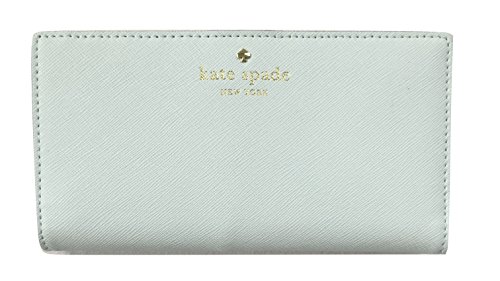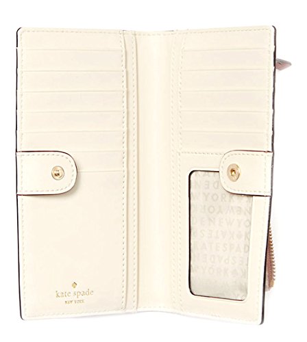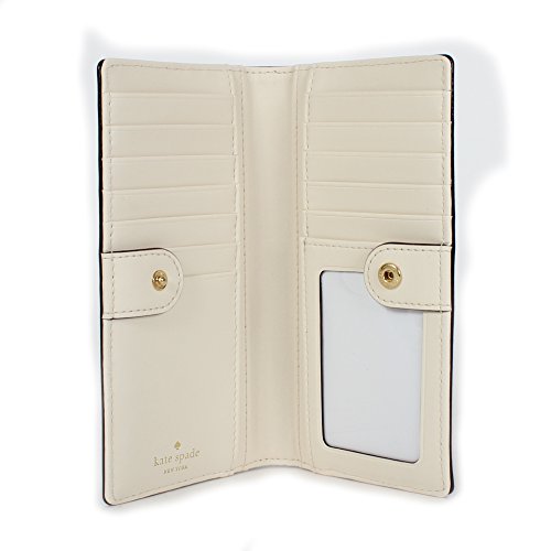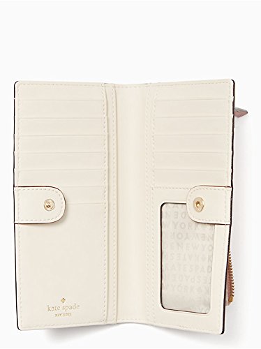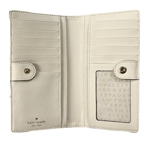 Binding : Apparel Product Description This compact Kate Spade New York Mikas Pond Stacey wallet is wrapped in crosshatch saffiano finished leather with 14-karat light gold plated hardware. This billfold has a snap closure, and Kate Spade's logo and heart stud accents the front. The back features an exterior zippered partial accordion pocket. The inside is leather and custom Capital Kate logo print fabric. It offers 12 credit card slots, a clear ID slot and 4 billfold compartments. This gem is slightly smaller than many at 6.75 inches (L) x 3.5 inches (H) x 1 inch (W). 0