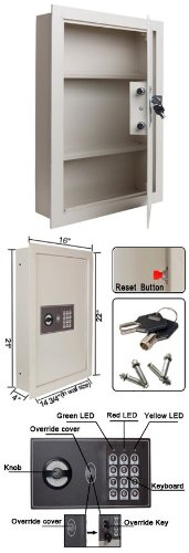 -. Binding : Office Product -. Brand : MXX -. Feature : Creamy White Durable Premium Powder Coated / Heavy-Duty Chrome Steel Dual 3/4" Pin Bolt Throw System / Outside Dimensions: H 22" x W 16" x D 4" / Inside Wall Dimensions:H 21" x W 14-3/4" x D 3-4/5" / Inside Dimensions: H 20-1/4" x W 13-1/2" x D 3-1/2" -. PackageQuantity : 1 -. ProductGroup : Single Detail Page Misc -. ProductTypeName : OFFICE_PRODUCTS -. Title : Electronic Digital Wall Safe II, 14 7/8" x 21", White