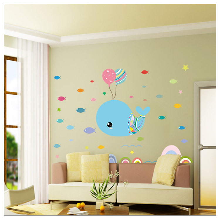 可爱卡通墙贴冰箱贴床头贴房间贴客厅贴瓷砖贴玻璃贴卡通鲸鱼气球