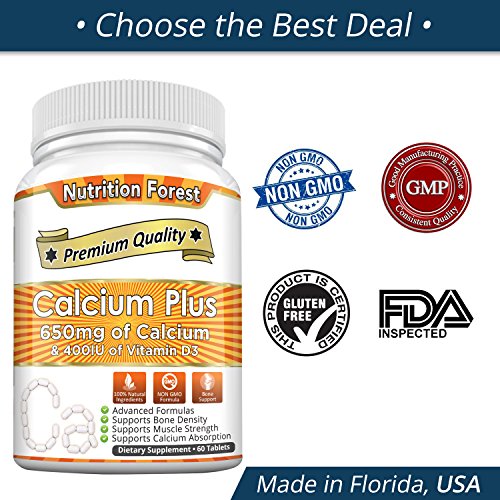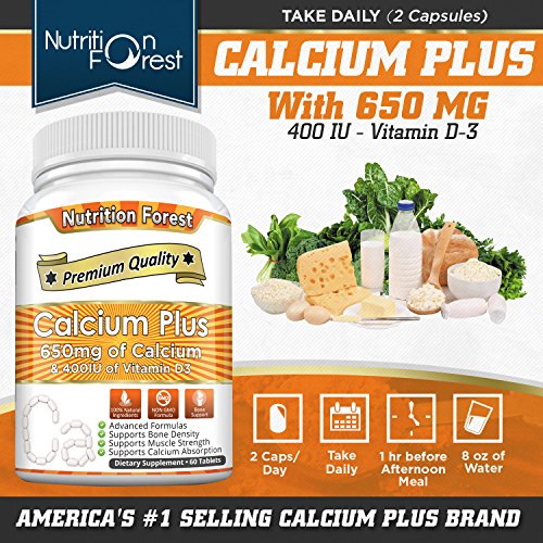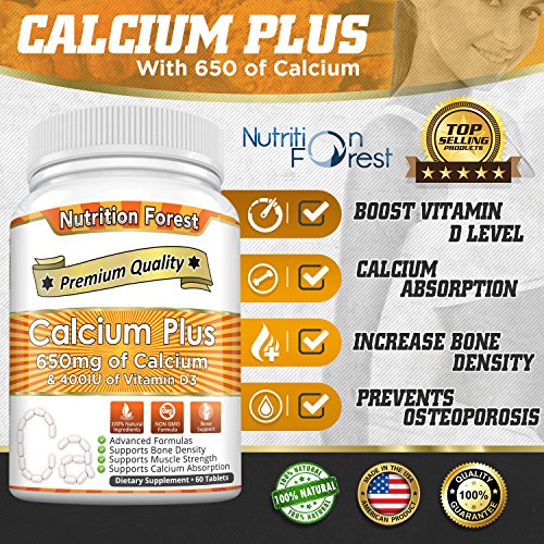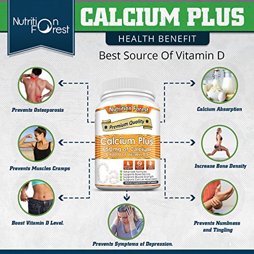 Nutrition Forest Calcium Plus 650mg is 100% natural and FDA approved. This natural supplement supports healthy bones. It prevents from fragile bones and osteoporosis. It also contains vitamin D that boosts calcium absorption as without vitamin D bones can't absorb calcium. It is made with non GMO formula and safe to consume.Feature