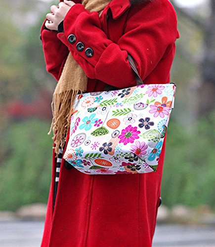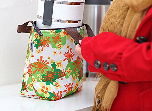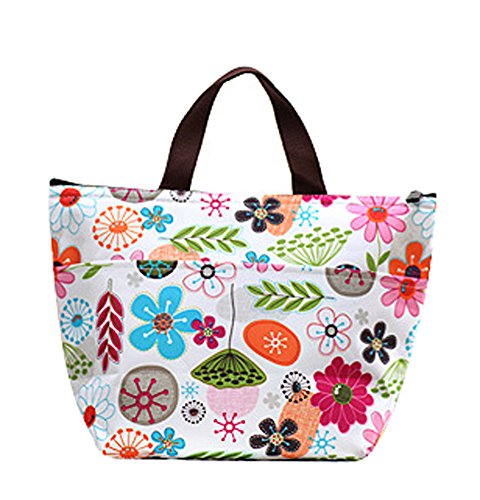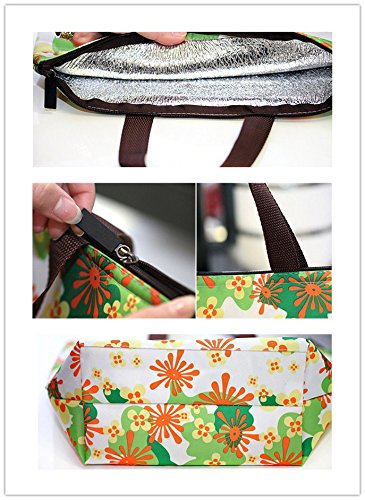 Ecokaki(TM) Womens Girls Kids Insulated School Travel Outdoor Thermal Waterproof Carrying Lunch Tote Bag Cooler Box Picnic Lunchbox Handbag, Flowers by Ecokaki
