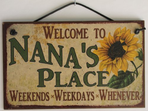 5x8 Vintage Style Sign with Sunflower Saying, "Welcome to NANA'S PLACE Weekends, Weekdays, Whenever " Decorative Fun Universal Household Signs from Egbert's Treasures