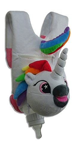 -. Feature : VERSATILE- can be adjusted to fit on many baby furniture, carseats, loungers, and carries. Pocket on the head stows pacifier and pacifier leash, pocket on the back can hold baby wipes or other small items. The velcro under the arms and legs allows it to be adjusted to many bottles and over hanging structures, and hold securely / SOFT FABRIC - soft to touch and smooth against babies delicate skin, soft fabric also allows Bottle Harness to be used as a comfort plush toy when not in use. The Bottle Harness is also washing machine safe and should be wash in cold or warm water and allowed to air dry. / INCLUDES- silicone bottle handles, which work on larger bottles and sip cups, the silicone is BPA free and can be used independently without Bottle Harness when needed for feedings, and can be used as child age progresses. Silicone handle used with Bottle Harness, GUARANTEES bottle will not fall or be pulled down and strike baby. / Use bottles that nipple doesn't allow bottle to leak while inverted, secure all legs to hanging structure and arms to bottle P.R.Ior to feeding.