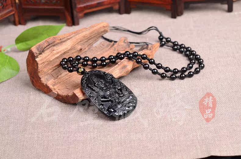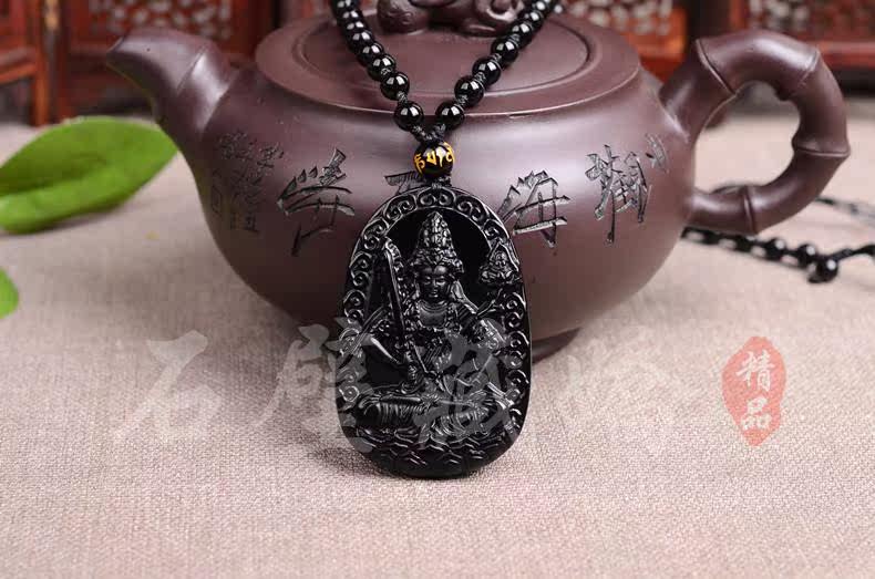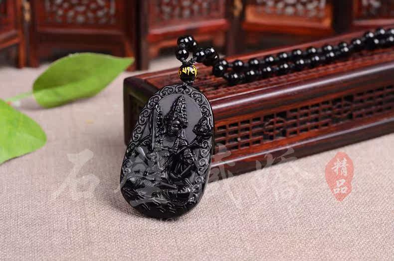 开光天然黑曜石属牛虎虚空臧菩萨吊坠生肖守护神本命佛男女款项链