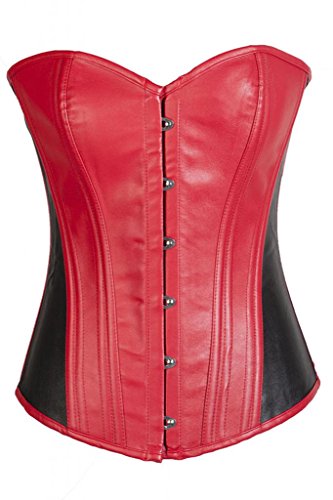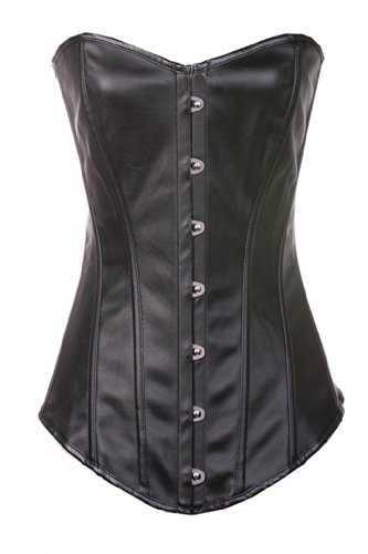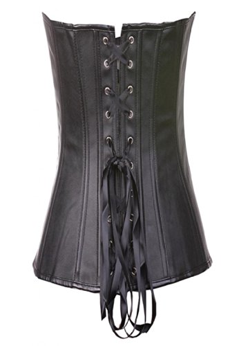 Lotsyle Women's Overbust Faux Leather Corset Lace Up Back Bustier