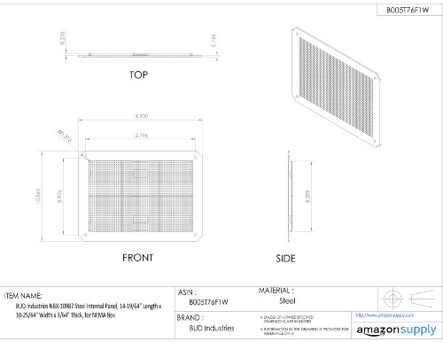 BUD Industries NBX-10987 Steel Internal Panel, 14-19/64" Length x 10-25/64" Width x 3/64" Thick, for NEMA Box