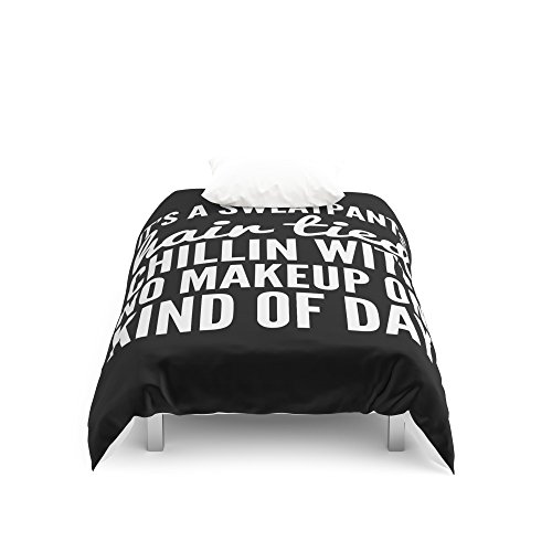 Studio : Society6 Publisher : Society6 Product Description Society6 IT'S A SWEATPANTS, HAIR TIED, CHILLIN WITH NO MAKEUP ON KIND OF DAY Duvet Cover by creativeangel. Cover yourself in creativity with our ultra soft microfiber duvet covers. Hand sewn and meticulously crafted, these lightweight duvet covers vividly feature your favorite designs with a soft white reverse side. A durable and hidden zipper offers simple assembly for easy care - machine washable with cold water on gentle cycle with mild detergent. Available for King, Queen and Full duvets - duvet insert not included. *Queen duvet works for Twin XL beds. 0