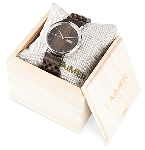 -. Binding : Watch -. Brand : LAiMER -. Department : Mens -. EAN : 4260498090051 -. Feature : RAÙL: The dial and the strap consist of sandal wood, the clasp and the case are made out of stainless steel. A great combination of nature and metal elements. The particular eye-catcher on your wrist / ITALIAN DESIGN & LIFESTYLE: In the very heart of the Alps, the South Tyrolean label LAiMER combines trends and environmental protection using only residual wood of the furniture industry from FSC certified cultivation / BUSINESS MEETS NATURE: This elegant men's watch refines every business outfit. Thanks to the combination of wood and metal, this model receives a special character and is a fashionable companion for every day / A MASTERPIECE OF NATURE: handmade quality with love for details. Timeless elegance and naturally plain. Sandal wood ensures a special wearing comfort: light and natural at the same time / EYE-CATCHER OF THE SPECIAL KIND: You can be sure of your friends' attention. Style and lifestyle in combination with environmental protection and sustainability -. IsAdultProduct : 0 -. Label : LAiMER -. Manufacturer : LAiMER -. Model : 0063 -. MPN : 63 -. PackageQuantity : 1 -. PartNumber : 63 -. ProductGroup : Watch -. ProductTypeName : WATCH -. Publisher : LAiMER -. Studio : LAiMER -. Title : LAIMER automatic woodwatch RAÚL – men’s wrist watch made out of sandal wood and stainless steel case - business & nature