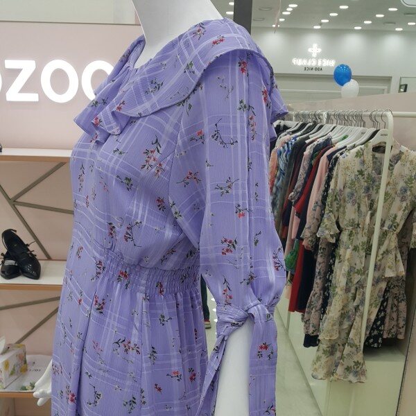 소매리본 디테일과 앞면의 프릴로 여성스러움을 돋보일수 있는 플로럴 쉬폰원피스입니다.