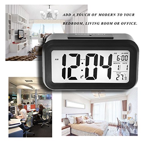 Studio : Slowslient Publisher : Slowslient Binding : Kitchen Product Description ?100% brand new and high quality. Features: ?Big LCD screen,energy saving,clear boldface number display,easy to read ?Smart light,built in light sensor,LCD backlight turns on automaticly when the room or circumstance becomes dark. And don't worry, this also won't disturb the sleep. ?Alarm sound stronger gradually, softly wake you up from dreams, special designed snooze function, when you turn down the alarm, it will ring again 5 minutes later ?Adjustable Time and Date Format, Circumstance Temperature Monitoring Function, Make Yourself a Easy Life ?Alarm Clock only, other accessories demo in the picture is not included Specification: ?Iterm Name: Alarm Clock ?Material: ABS ?Power Supply: 3x1.5V AAA batteries (not included) ?Size: approx. 135x45x75mm/5.31x1.77x2.95' ?Color: Black,Hot Pink,Green,Blue,White ?Quantity: 1 Set Note: ?1.Please allow 1-3cm error due to manual measurement. pls make sure you do not mind before you bid. ?2.Due to the difference between different monitors, the picture may not reflect the actual color of the item. Thank you Packaging includes: ?1 x Alarm Clock (without retail package) ?1 x User Manual