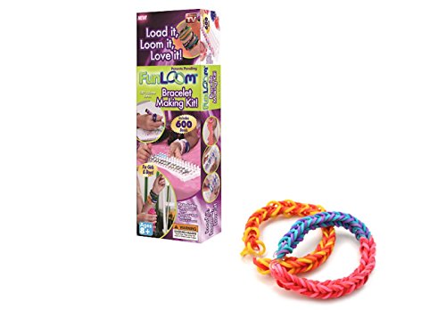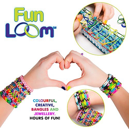 Studio : Fun Loom Publisher : Fun Loom Binding : Toy Product Description Create your own cool, colorful jewelry with the fun loom kit the kit includes an expandable loom board that lets you design and make stylish accessories such as bracelets, rings, hair bands, belts, necklaces and more. This creation station also comes with a hook, 600 colorful silicone bands, 30 closure clips and a step-by-step "how to loom" guide. 600 non-toxic 100% silicone bands are enough to make 24 bracelets. Bands are reusable, easily take them apart and start over durable, super stretchy bands in a rainbow of colors. Silicone won't fade and won't pull hair or skin. Tray colors may vary. 0