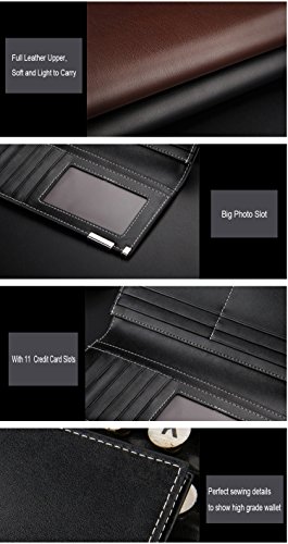 -. Feature : Genuine Leather: Featured high quality genuine leather upper, feel soft, wear resistance, light to carry. / Large Capacity: 2 x Big Cash Slots, 11 x Credit Card Slots, 1x photo slot / Compact Size:18.5*9.5*1.5cm. Convenient to put in into briefcase,backpack and briefcase for working ,shopping and daily use. / Classic Style: Simple design, with high quality soft leather and convenient wrist strap. It is perfect for everyday life and work. / Guaranteed: We know you'll love our wallet as much as we do, if you're not 100% SATISFIED, let us know and we will make things right: full refund or a free replacement, whichever you would prefer.