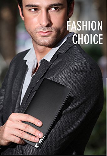 -. Title : Men's Genuine Leather Long Bifold Checkbook Wallet Card Holder
