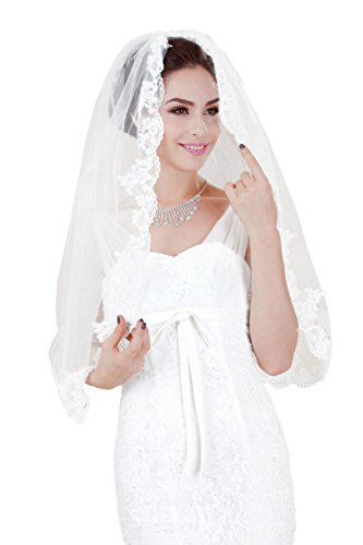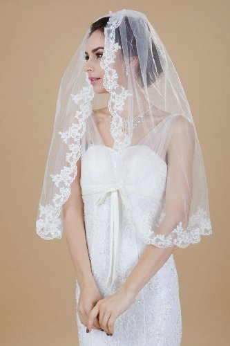 Venusvi Lace Edge Cathedral Length Wedding Bridal Veil for Women (Ivory)