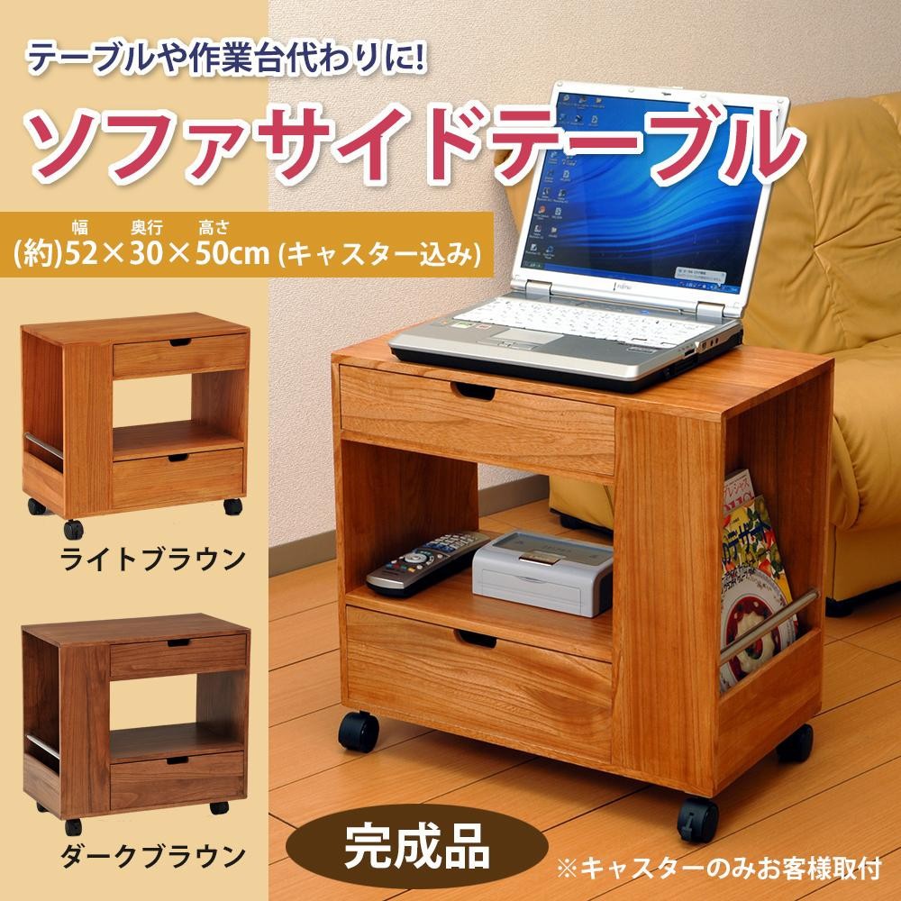 浅型、深型の引出しにはリモコンやメガネなど、サイドのラックには雑誌や新聞が収納できます。引出し下にはフリースペースを設けているので、小型のプリンター等も置けます。 |