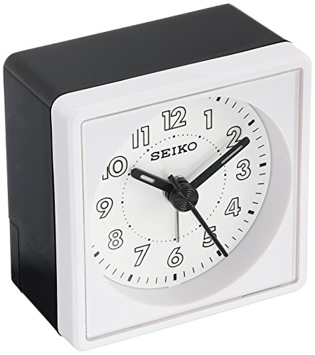 Rise and shine to the sound of the Seiko QHE083SLH Alarm Clock - 2.25 in. Wide. With luminous hands and markers, this clock makes it easy to keep tab of the time in the dark. With a sturdy metallic case and an appealing hue, this clock is a must-have beside your bed. It also features a beep alarm and a quiet sweep second hand. Made to be functional with quartz movement and a plastic crystal, this clock is aptly sized for travel. Over its 120 year history as a maker of fine timepieces, the Seiko name has become synonymous with cutting edge technology, ultra-precision, constant innovation and refinement. Millions worldwide rely on Seiko wristwatches to keep them on schedule. Two generations have grown up thrilling to Olympic and World Cup competitions where victory or defeat is defined within a fraction of a second, all overseen by Seiko timekeepers. Silver metallic case with plastic crystal. Features an analog display and alarm. Black dial with white hands or white dial with black hands. Clock requires 1 AA battery (included). Overall dimensions: 2.25W x 1.25D x 2.25H inches.Feature