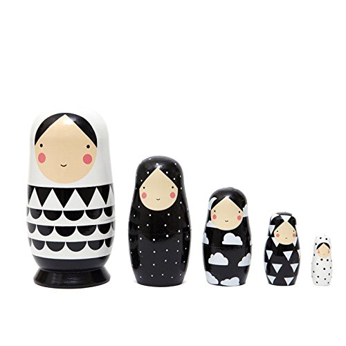 -. Title : Nesting doll Black and white - Completely handmade matryoshka 7" / 18cm