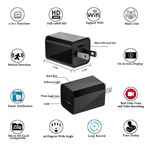 -. Title : WEMLB 1080P HD Wall Plug USB Charger Hidden Camera Motion Detection Wireless Nanny Camera Ac Adapter WIFI Spy Hidden Camera, Loop Recording and Remote App Control