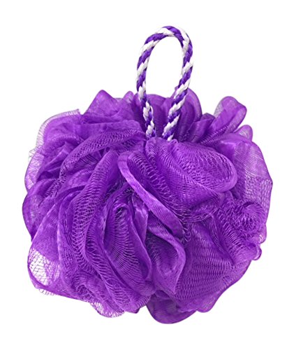 Purple nylon mesh net pouf scourer bath shower ball is the perfect addition to a shower or bath that massages and gently exfoliates your skin making it soft, smooth and glowing.