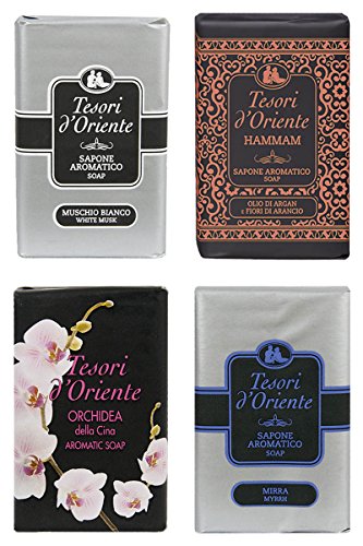 Tesori d'Oriente: Set of 4 Aromatic Perfumed Soaps * 5.29 Ounces (150g) Bars (Pack of 4 Scents) * [ Italian Import ]