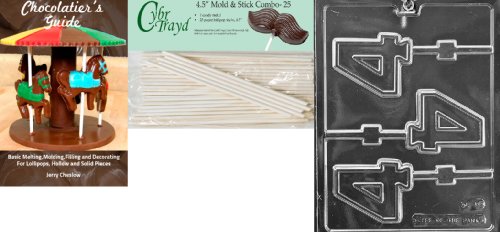 Cybrtrayd 'No. 4 Lolly' Letters and Numbers Chocolate Candy Mold with 25 4.5-Inch Lollipop Sticks and Chocolatier's Guide