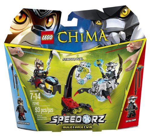 Journey deep inside the scorpion's cave with Shadowind to snatch the CHI ring caught on the stinging scorpion's tail. Attach Shadowind and Scolder to their Speedorz, pull the rip cords and race to be first to take the ring. Attach the power-upz to take the duel to another level. Includes 2 minifigures with armor and 4 weapons: Shadowind and Scolder. Also features black lion Speedor, new scorpion Speedor with red fangs, scorpion tail, 2 rip cords, rocket-booster lion power-up, scorpion power-up, translucent CHI ring, 12 CHI crystals and 10 game cards. Put your skills to the test and challenge your friends in this game for 2 or more players.Feature