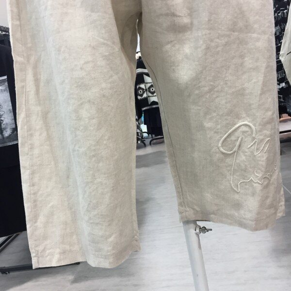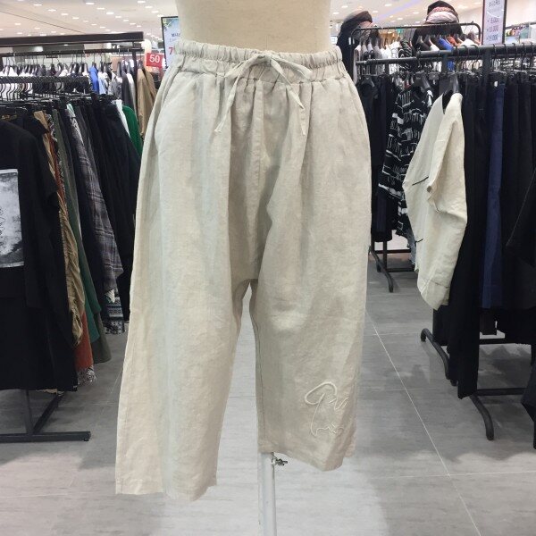 #린넨 자수레터링 세트 8부 팬츠린넨소재에 자수 레터링으로 포인트를 준 8부 팬츠입니다.시원하고 가벼워 여름에 입기 좋은 제품입니다.