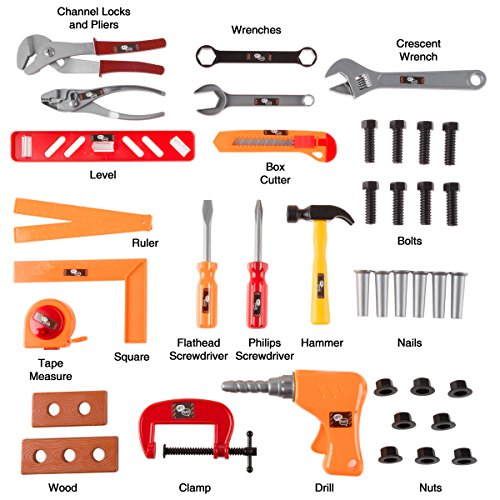 Studio : TMG Publisher : TMG Binding : Toy Product Description The 40-Piece Toy Tool Box Set is the perfect gift for your little handyman! Kids can store and organize their tools in the tool box that's just like dads, with a removable tray, carrying handle and two front closures. Tools do come with this set, and includes: channel locks, pliers, level, ruler, tape measure, square, wrench, box cutter, flathead and Philips screwdrivers, hammer, clamp, drill, crescent wrench, bolts, nails, and nuts. This construction set is an awesome gift for both boys and girls, and is ideal for pretend play. TOOL BOX- The tool box that comes with this set is just like dads with a removable tray, carrying handle and two front closures to help keep everything securely inside. 40-PIECE SET- This awesome set comes with all the tools your little handyman will ever need! The set includes channel locks, pliers, level, ruler, tape measure, square, wrenches, box cutter, screwdrivers, hammer, clamp, drill, nails, nuts, and bolts. SAFE AND DURABLE- The plastic tools in this set are safe and durable, and come with a convenient case to store, organize and carry everything. HOURS OF FUN- Your child will have no problem channeling their inner contractor or construction worker with this wonderful gift. This set is ideal for pretend play, great for both boys and girls, and will provide hours of fun! PRODUCT DETAILS- Set includes: Toolbox measuring (W)12.5"x (H)8"x (D)6.5"; tools: channel locks, pliers, level, ruler, tape measure, square, wrench, box cutter, screwdrivers, hammer, clamp, drill, crescent wrench, bolts, nails, nuts. Material: plastic. 0