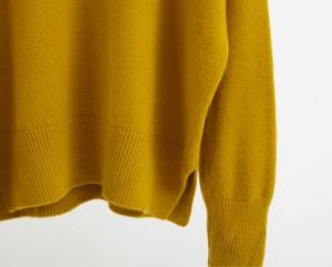 ニットは伸び縮みが心配ですが、襟回りと袖口にネックラインに編み込みが入っているから安心♪
