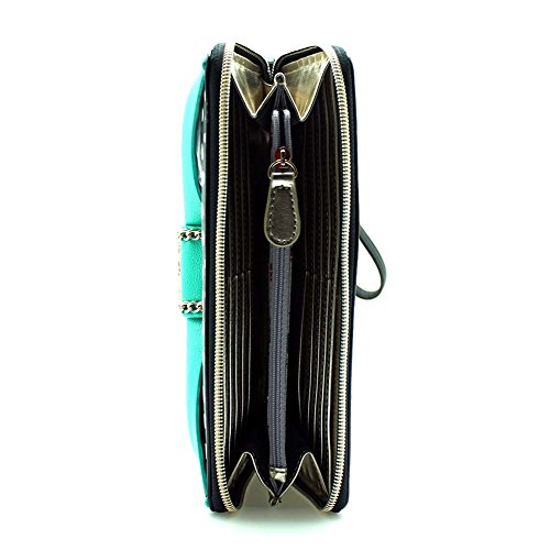 Feature : Large Zip Around Wallet / Width: 8.5" x Height: 5.25" x Depth: 1" / PU leather / Top-zip closure